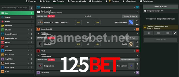 O 125Bet oferece uma grande seleção de opções de apostas em e-sports com probabilidades competitivas